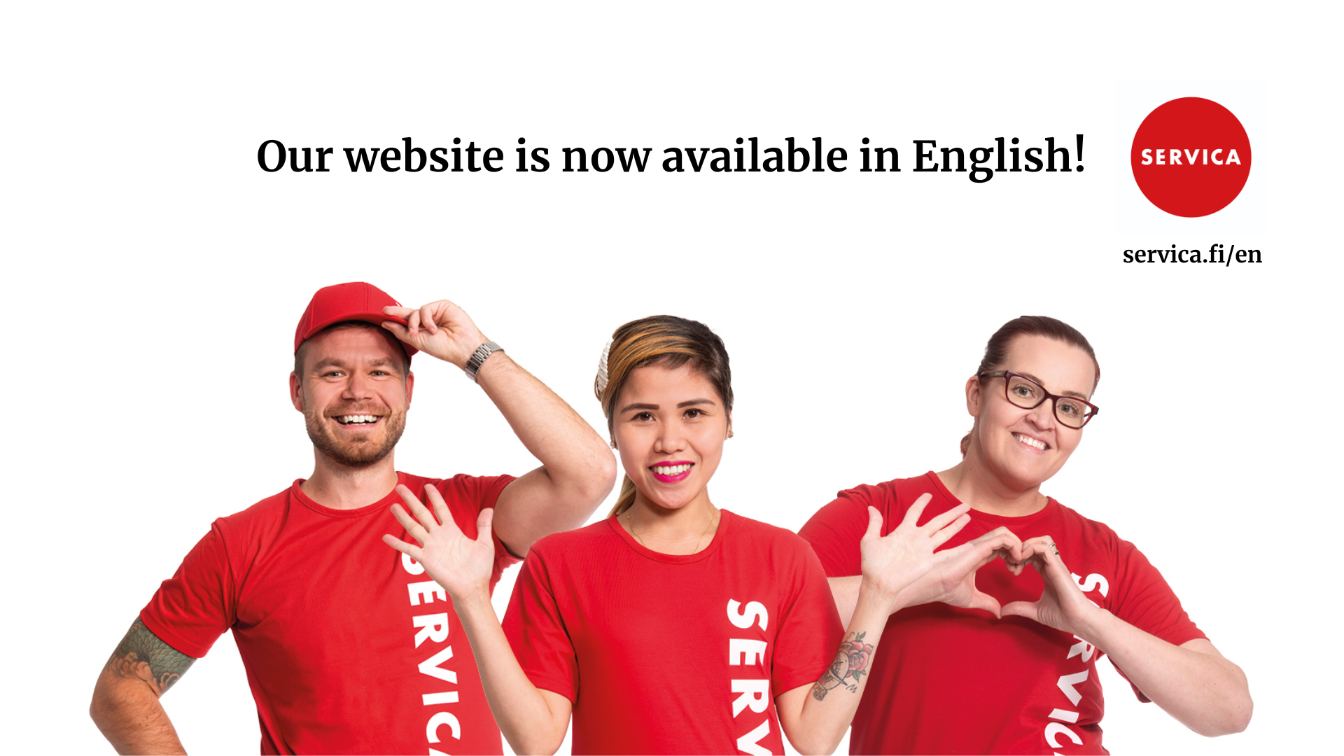 Verkkosivuiltamme löydät nyt koottua tietoa palveluistamme ja toiminnoistamme myös englanniksi. Englanninkieliselle sivustolle pääset verkkosivujen päänavigaation kielivalinnasta tai suoraan tästä https://www.servica.fi/en/.
