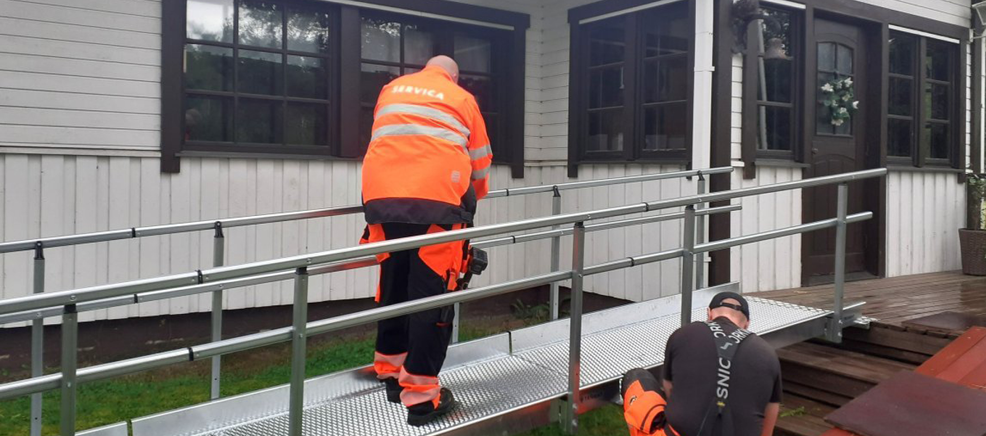 – Osa asennuksista on tunnin keikkoja, kun taas osassa menee viikko. Välillä käymme vain asentamassa tukikahvat tai kynnyslistat, kun taas välillä rakennamme rampin ulko-ovelle, kommentoi Jouni Pohjolainen.